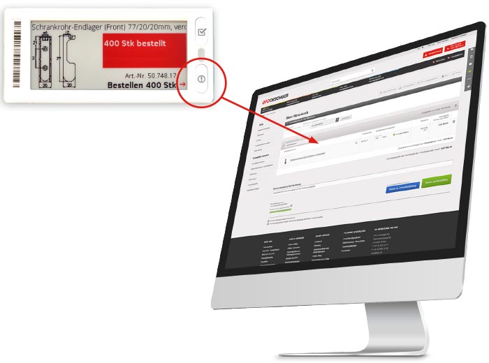 2. Das SmartLabel übermittelt die Informationen über das Produkt und die Nachbestellung direkt in die Bestellliste des Online-Shops OPO-Net.