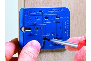 Lehre zum Bohren der seitlichen Befestigungspositionen für Scharniere (ø 8 bzw. ø 2.5 mm) Lehre zum Vorbohren der Bef...