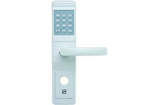 Mit dem Türcodebeschlag bleibt die mechanische Funktion der Tür erhalten. Der Aussendrücker wird nach Eingabe vom 2- ...